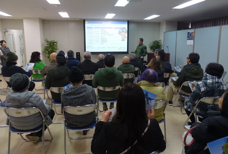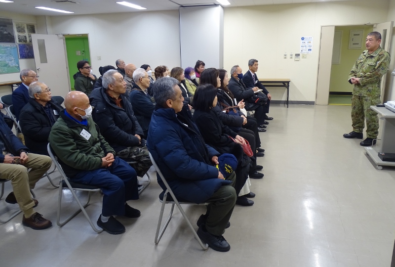 途中海ほたるにて休憩、遠く富士山も見える。 木更津駐屯地の概要などの説明を受ける