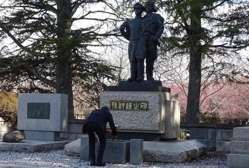 (2)旧陸軍村松少年通信兵学校慰霊碑及び陸上自衛隊新発田駐屯地殉職隊員慰霊碑に参拝・献花