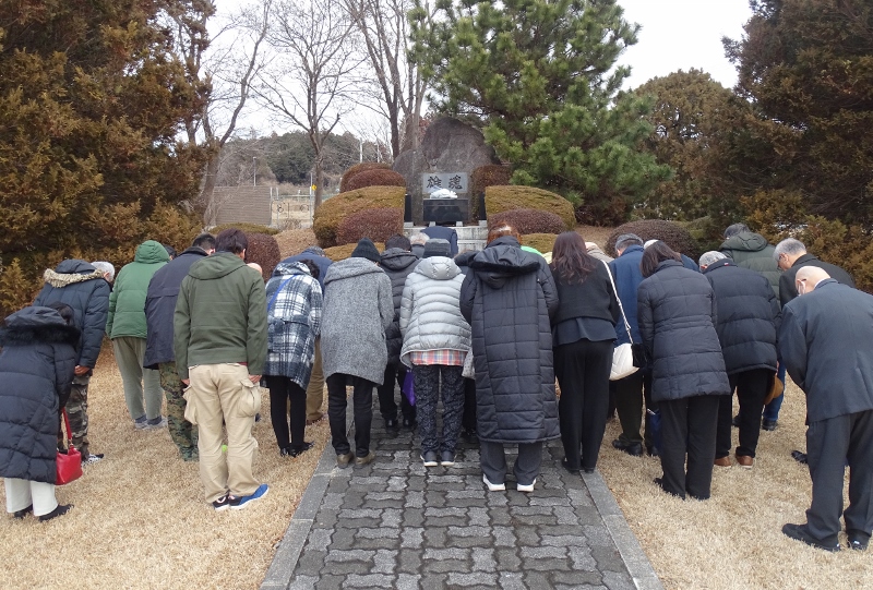 旧陸軍村松少年通信兵学校慰霊碑に参拝、献花