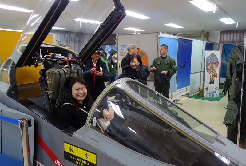 基地の概要、配置部隊等の説明を受ける。 3人のブルーインパルス操縦士に直接質疑応答。