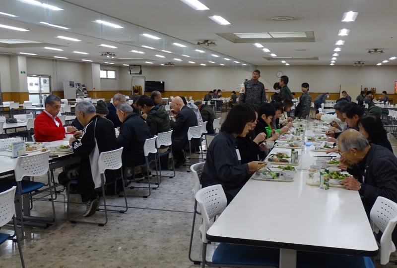 生徒舎にて隊員(学生)の生活等を見学 学校長ほか主要幹部と共に昼食