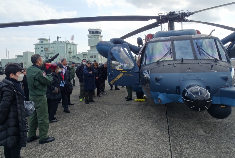 EC225(要人輸送機)、OH6D、OH1、UH60JA、CH47など見学、説明を受ける